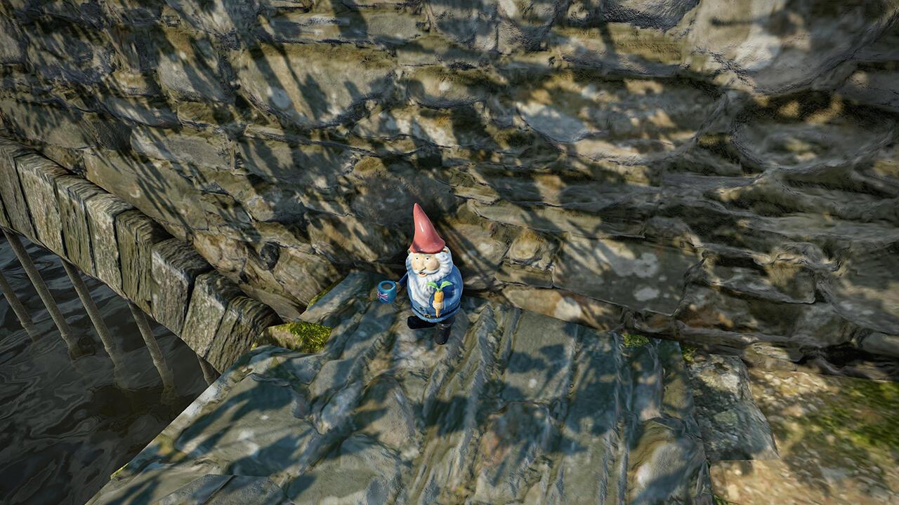 Gnome #5 – Church Roof: Return to the roadway and head back toward the central square. Before reaching it, divert right toward St. Katherine’s Church. Enter the religious structure and take the initial left, circling around the corner and ascending the staircase on your left. Climb completely upward and scale the ladder accessing the rooftop. Once elevated, promptly move toward the ledge and deliver an uppercut to the gnome—avoid confronting the bats entirely as they respawn indefinitely.