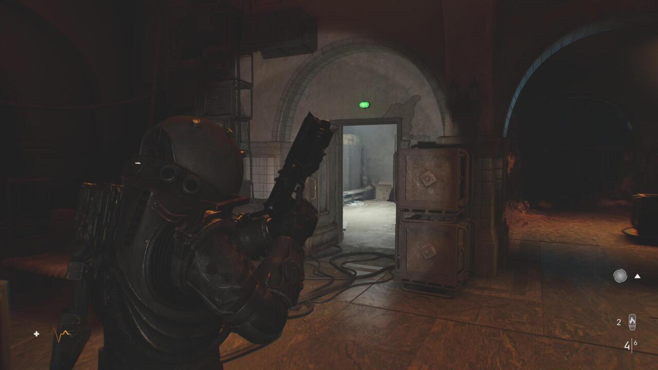 After securing bolt cutters from the hardware store establishment, retrace your steps toward the initial descent point into this region. A secured door blocked by chains becomes accessible here – employ your newly acquired tool to breach this barrier and discover the concealed interior.