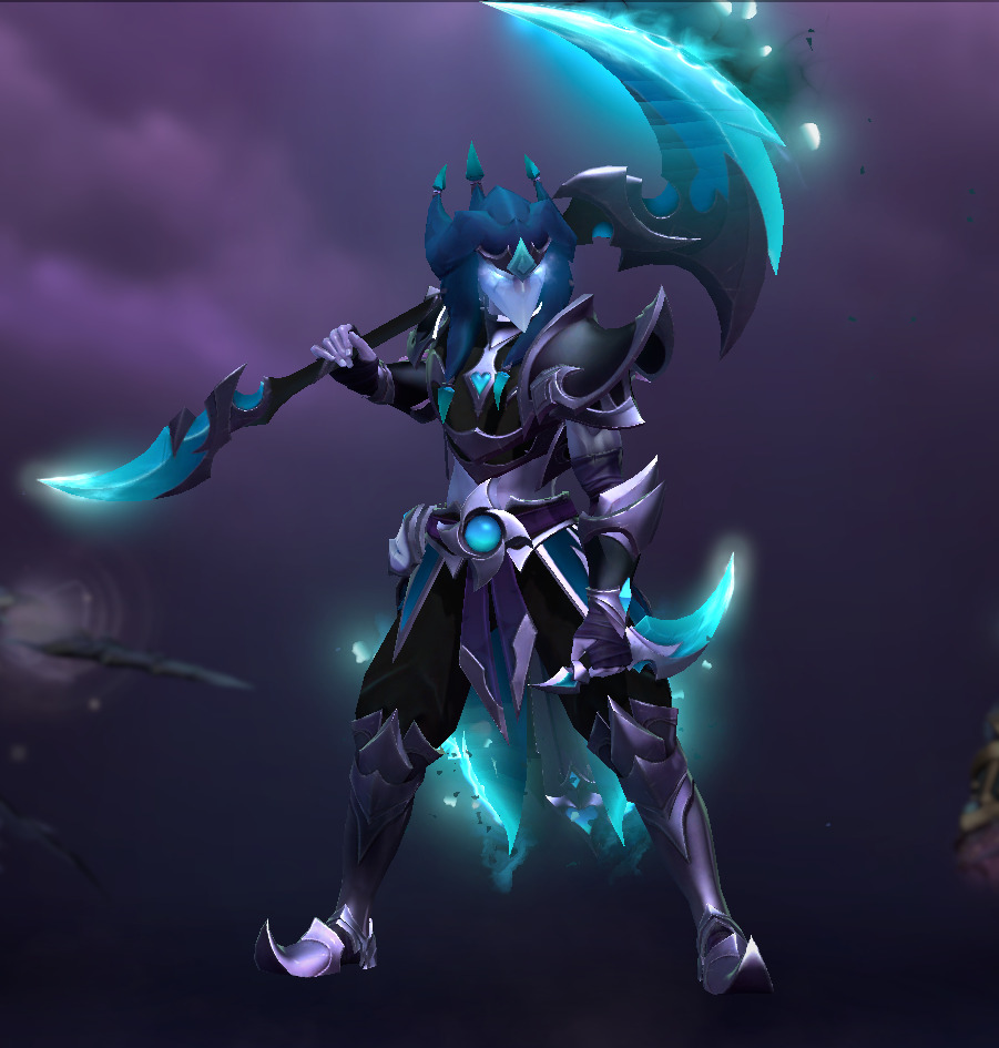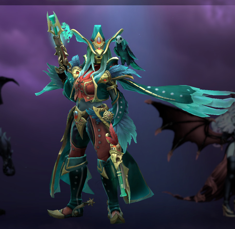 Naga Siren’s aquatic-themed armor includes flowing silks and pearlescent scales that create mesmerizing light reflections. Her weapon receives special attention with custom net and song animations that enhance her core ability visuals without creating confusion.