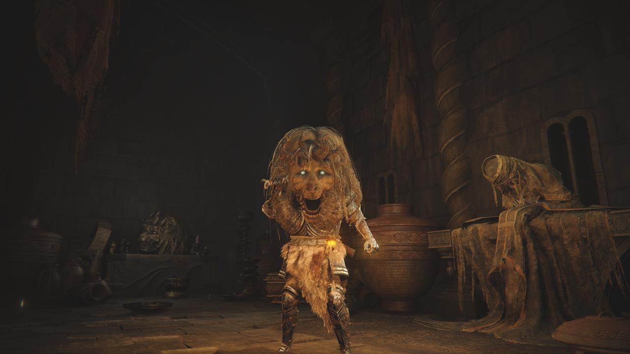 Return to the Small Private Altar Site of Grace and employ the key to unseal the chamber. The Hornsent Grandam will recount tales of Messmer’s brutality. Notably, a distinctive lion head artifact rests on the opposing table, hinting at future developments.