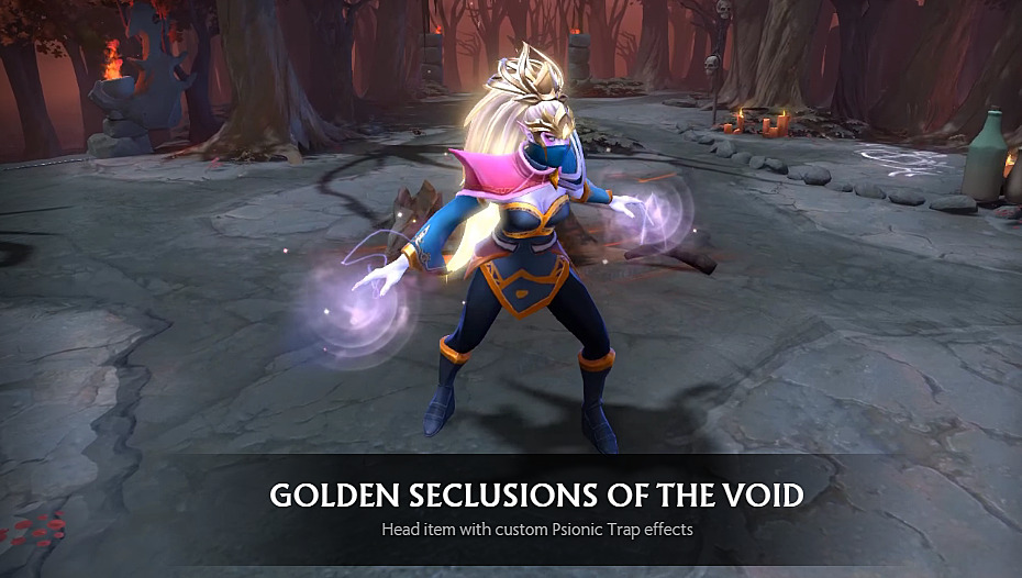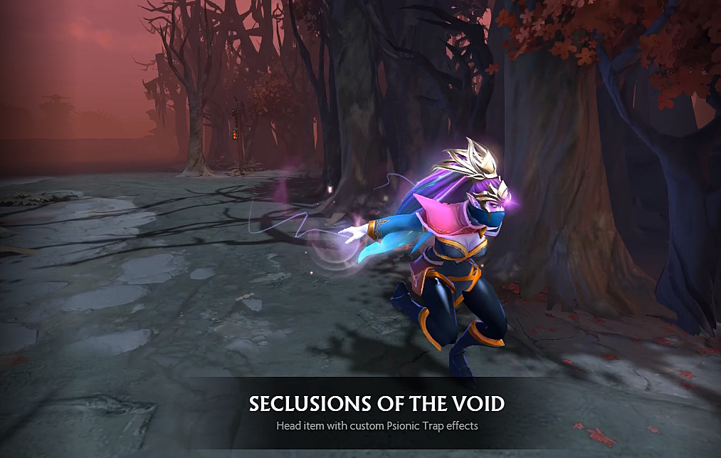 Templar Assassin’s Seclusions of the Void immortal enhances her Psionic Trap ability with void energy effects. The traps feature pulsating cosmic energy and release distinctive spatial distortion visuals when triggered, offering improved visibility for strategic area denial.
