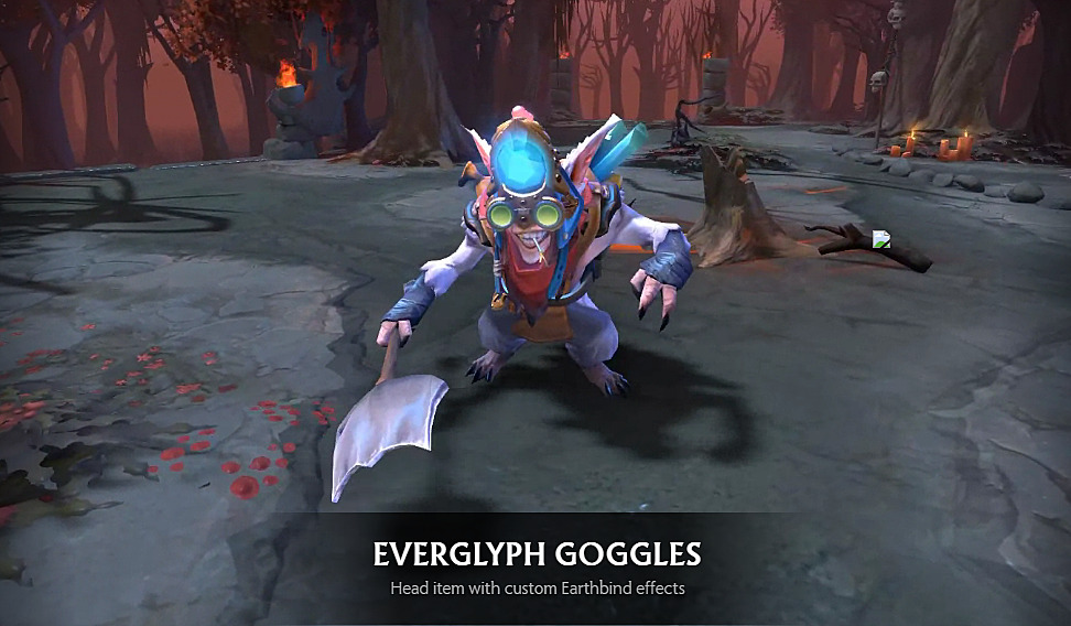 Meepo’s Everglyph Googles immortal enhances his Earthbind ability with arcane glyph animations. The nets display mystical symbols that pulse with magical energy, creating distinctive visual markers for trapped enemies that benefit team coordination.
