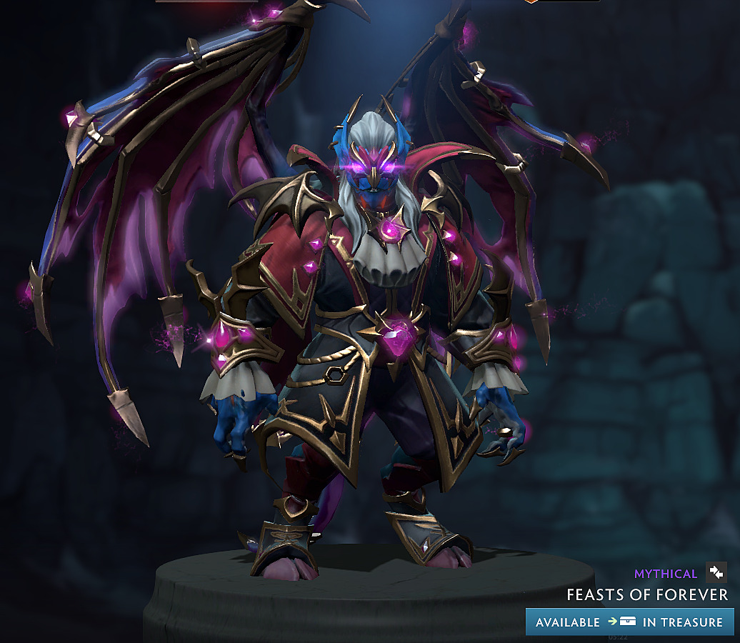 Legion Commander’s avian-inspired armor features intricate feather detailing and a commanding presence that enhances her duel-winning animations. The set maintains her signature color palette while introducing new particle effects during Press the Attack and overwhelming odds casts.