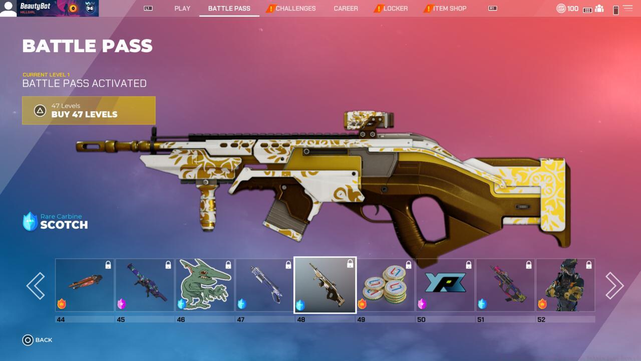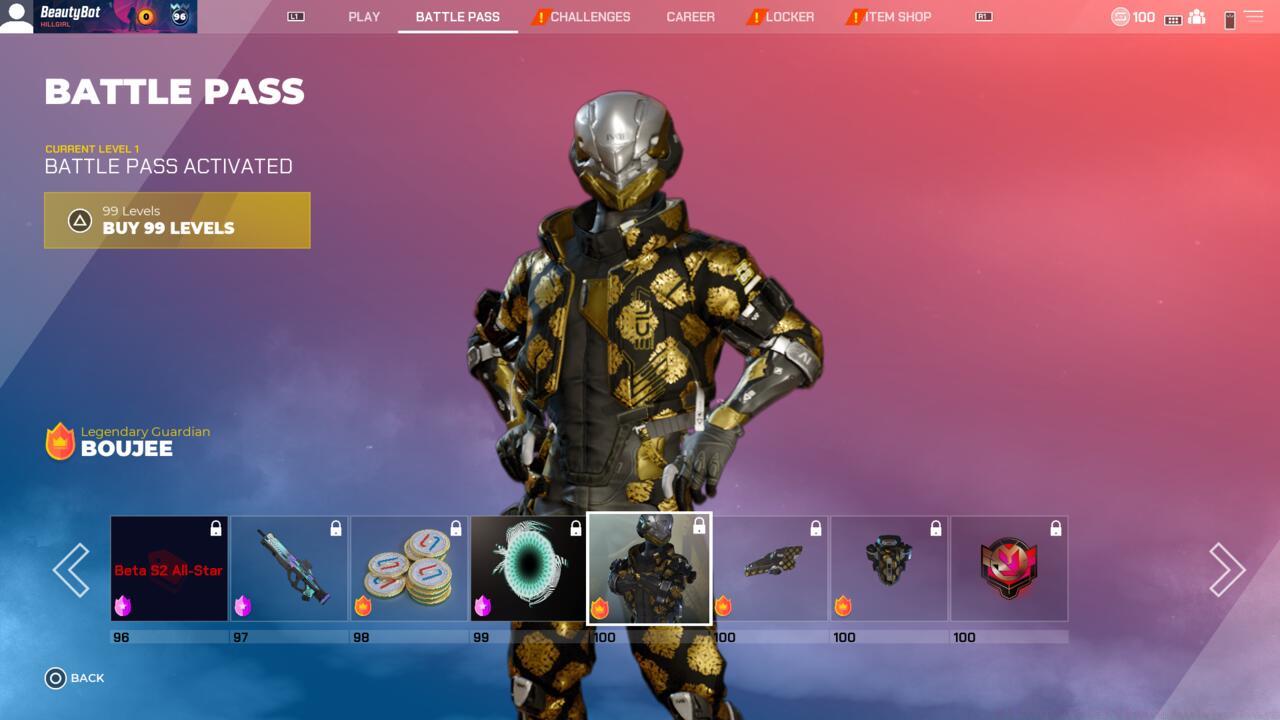 Players achieving the maximum level 100 milestone will accumulate substantial rewards: five separate 5% XP boosts (combining for 25% total acceleration), 1200 Splitcoins currency, and ten random loot containers. Additionally, battle pass completion unlocks the exclusive Legendary-tier Guardian character alongside three distinctive Guardian skin variations.