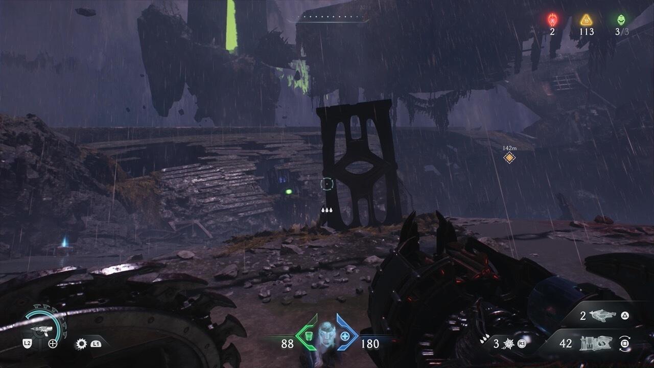 - Use weather portal, locate caged Cacodemon toy in ruined ship, execute shield bash and throw sequence