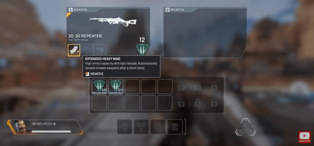The 30-30 Repeater utilizes Heavy Rounds, sharing ammunition with weapons like the Flatline and Rampage. Its base magazine holds 6 rounds, with extended magazines providing significant capacity boosts: