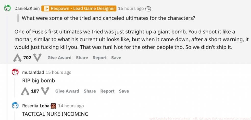 During Apex Legends Season 8 development, Respawn Entertainment considered a radically different Ultimate ability for Fuse that would have dramatically altered gameplay dynamics. Lead designer Daniel Klein revealed in a Reddit AMA that the team experimented with a ‘straight up giant bomb’ concept that functioned similarly to a mortar strike.
