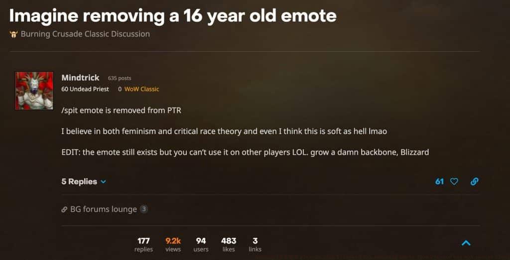 Analyzing Blizzard’s controversial decision to remove /spit emote while allowing racial slurs in WoW Classic
