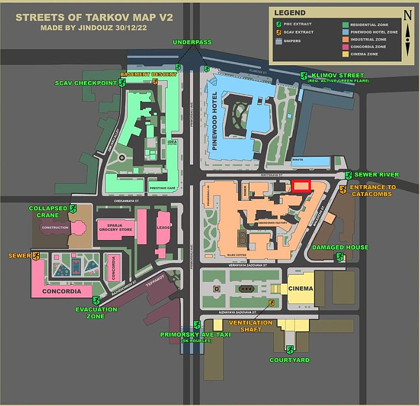 - Locate the financial brokerage near hotel and car dealer in central Streets of Tarkov