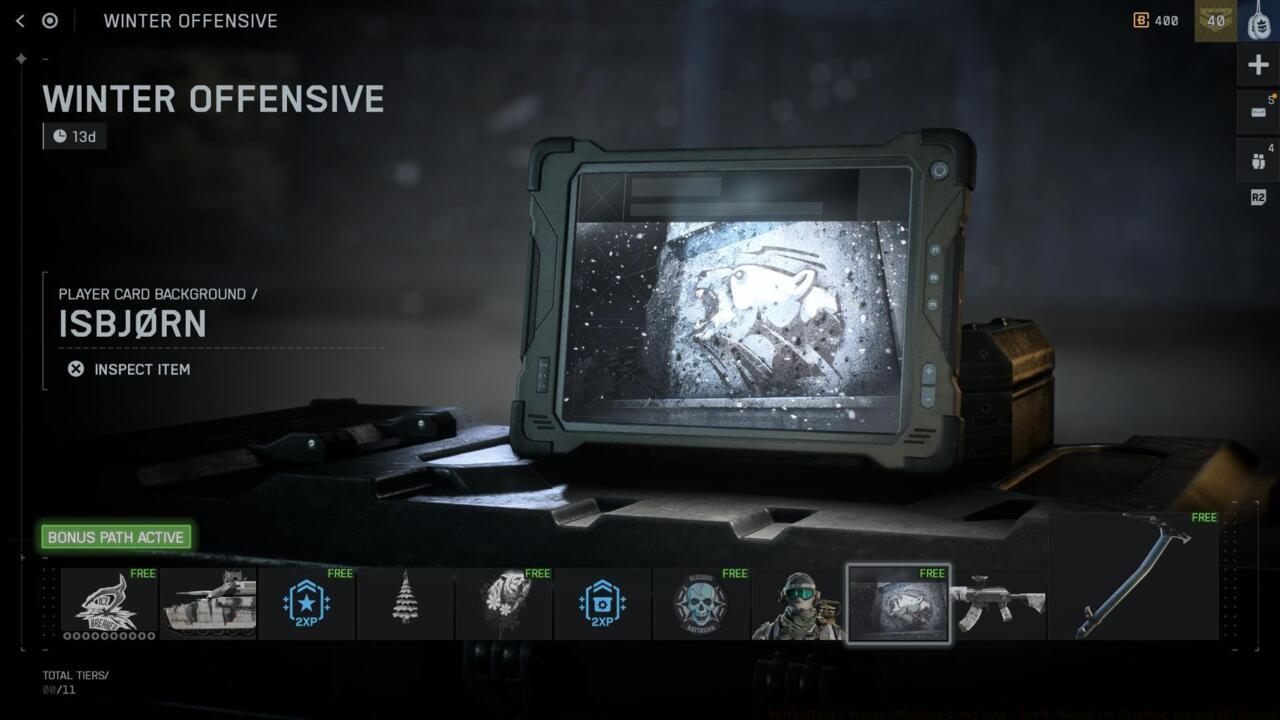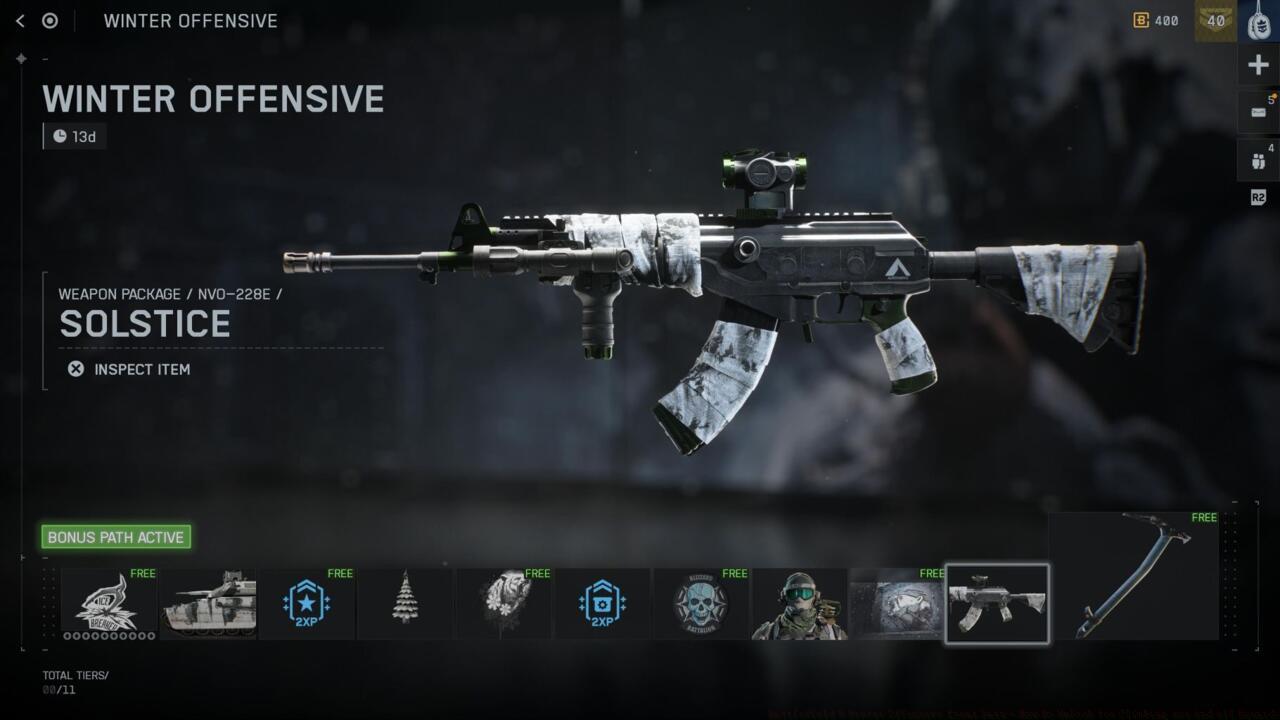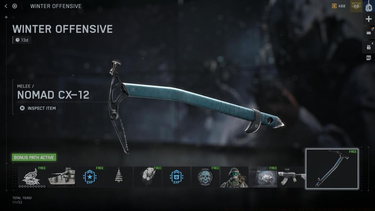 - Winter Offensive runs until December 22 with 11 reward tiers including free Nomad CX-12 ice axe
