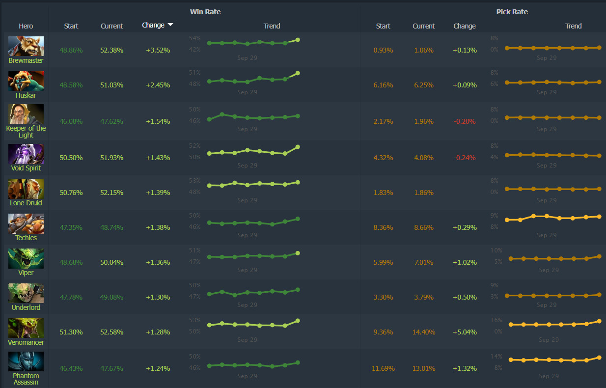 - Experiment with subtly buffed heroes like Brewmaster before they become meta