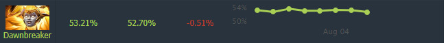 - Dawnbreaker dominates offlane with 54% winrate in Immortal bracket