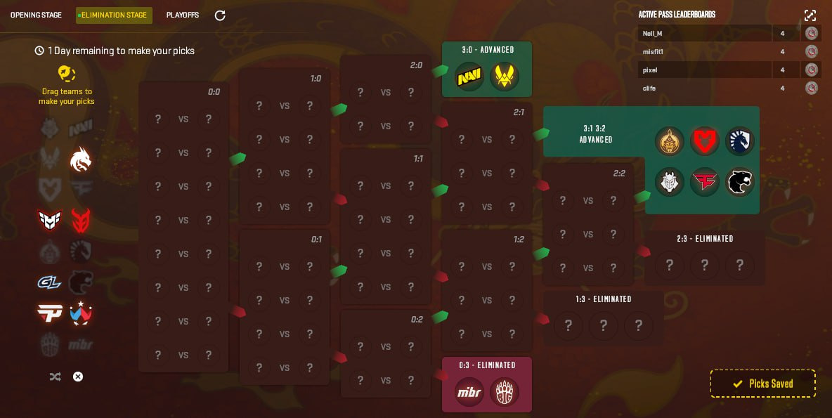 Pick’Ems submissions close immediately before the Elimination Stage’s inaugural match commences on December 5 at 4:00 AM CET. The in-game countdown display can be misleading, as it typically indicates one day remaining while omitting the additional hours. This discrepancy often causes unnecessary panic among participants who mistakenly believe they’ve missed the deadline.
