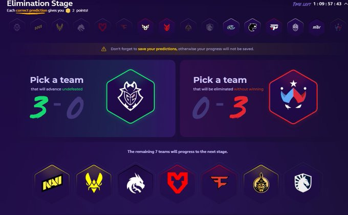 - Pick five correct teams to upgrade to Diamond Coin in Elimination Stage