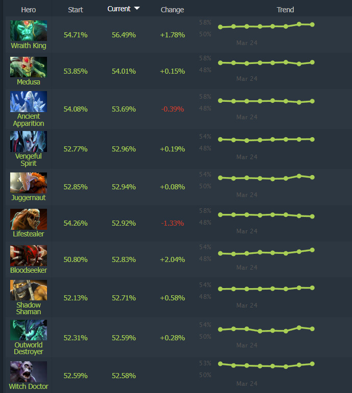 - Wraith King dominates with 1.8% win rate increase despite minimal changes