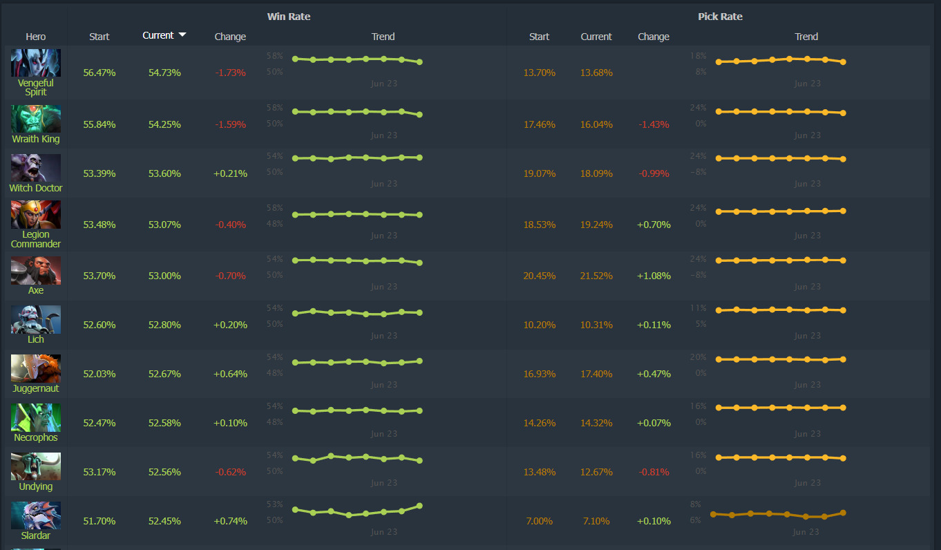 - Prioritize Vengeful Spirit, Wraith King, and Witch Doctor for maximum winrate potential
