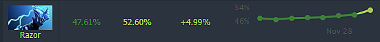 Slark continues as a reliable carry option with 54% win rate in high-level matches. Absence of direct hero changes or item nerfs preserves his effectiveness in the current meta landscape.