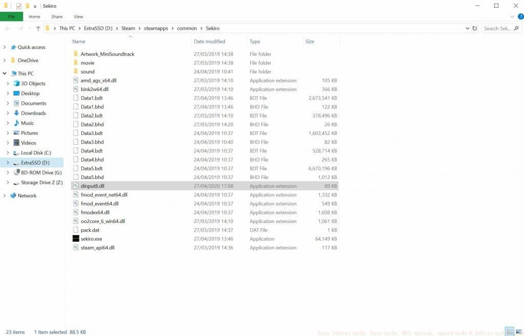- Open each mod archive and transfer all DCX files into the “parts” folder located within your Sekiro game files