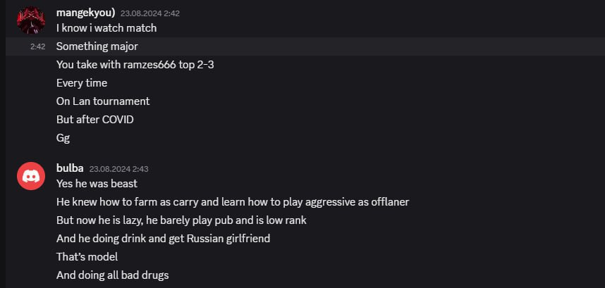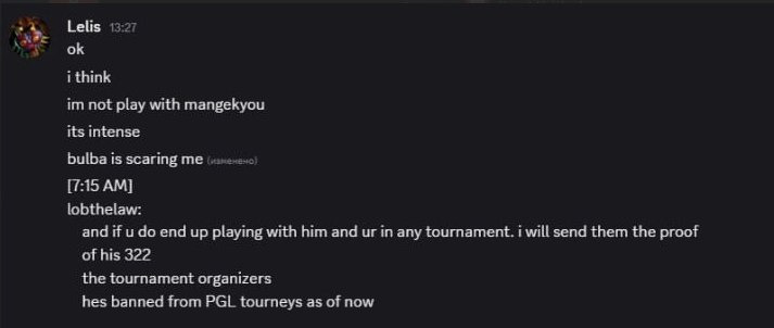 Mangekyou further alleged that Bulba consistently disparaged his former professional players. Screenshot evidence included derogatory comments about Arteezy and SabeRLight-, among other prominent names in the competitive scene.