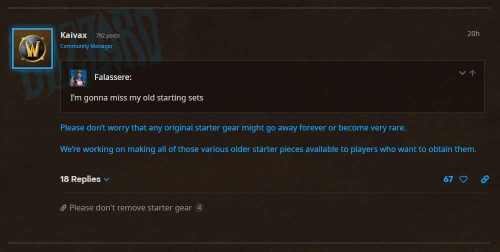Blizzard addresses World of Warcraft community backlash over starter gear changes with preservation plans and player-focused solutions