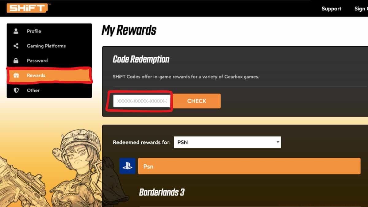 SHiFT Website Redemption Method