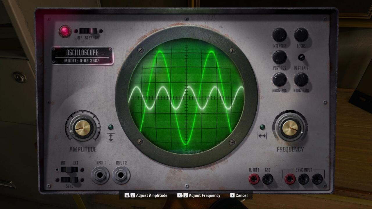 - Master the oscilloscope minigame by matching waveforms to reveal combination numbers
