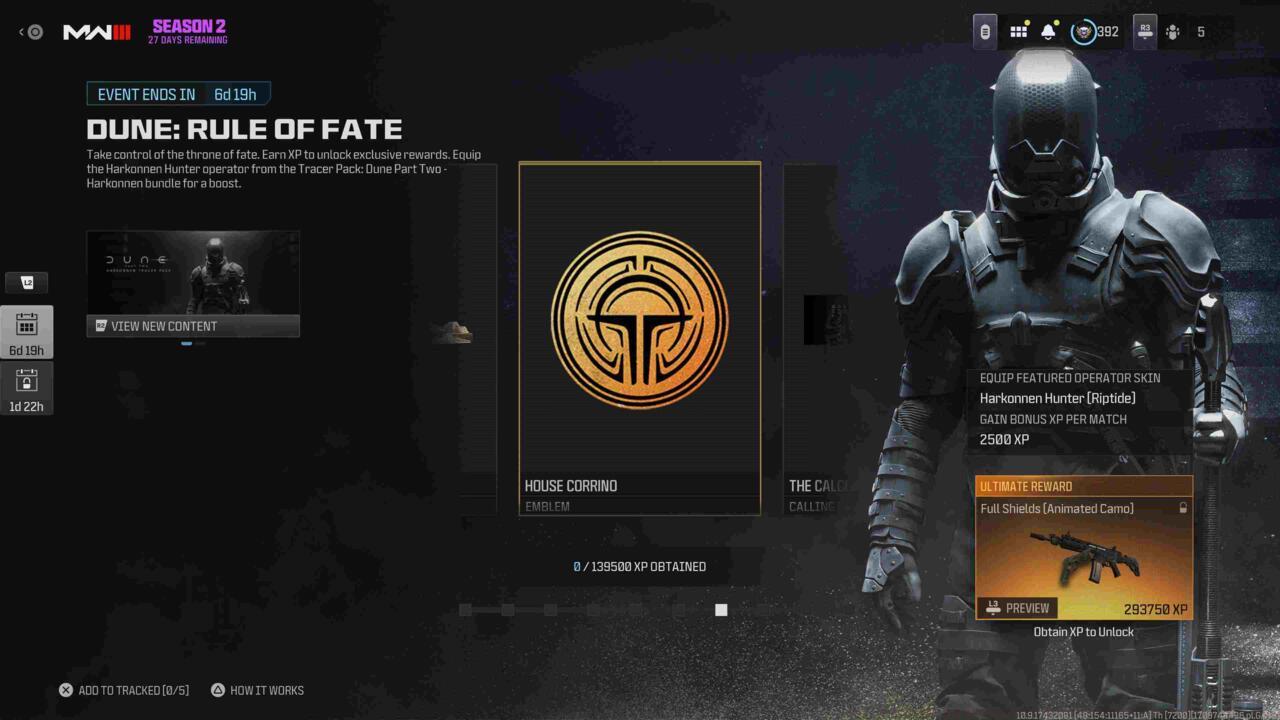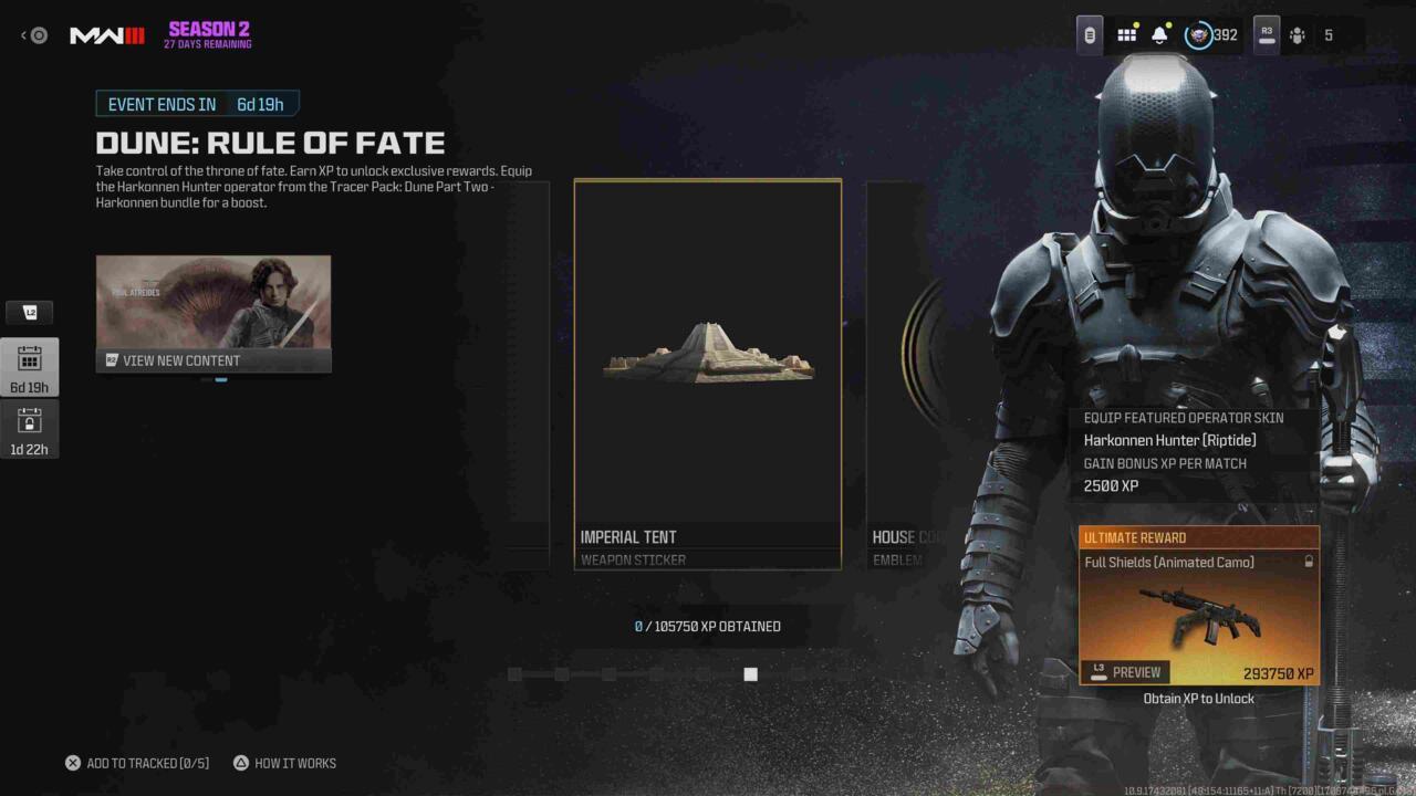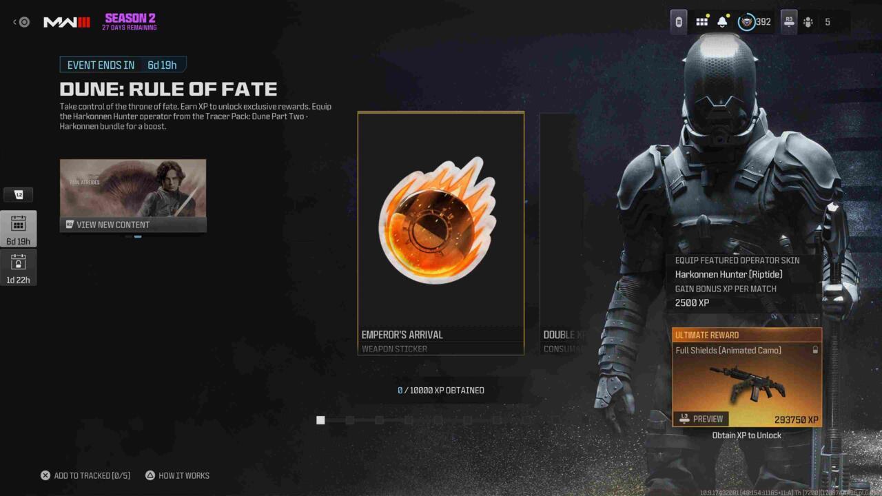 The limited-time Dune: Rule of Fate crossover has arrived in Call of Duty: Modern Warfare 3 and Warzone as part of Season 2 Reloaded, presenting players with another exclusive opportunity to collect Dune-inspired cosmetic items and progression rewards. This event introduces a tiered XP-based unlocking system where players earn distinctive cosmetics including the ceremonial Ceremony’s Blade weapon charm, the prestigious House Corrino faction emblem, and the highly sought-after Full Shields weapon camouflage. Our comprehensive breakdown covers every available reward alongside strategic approaches to maximize your XP gains efficiently.