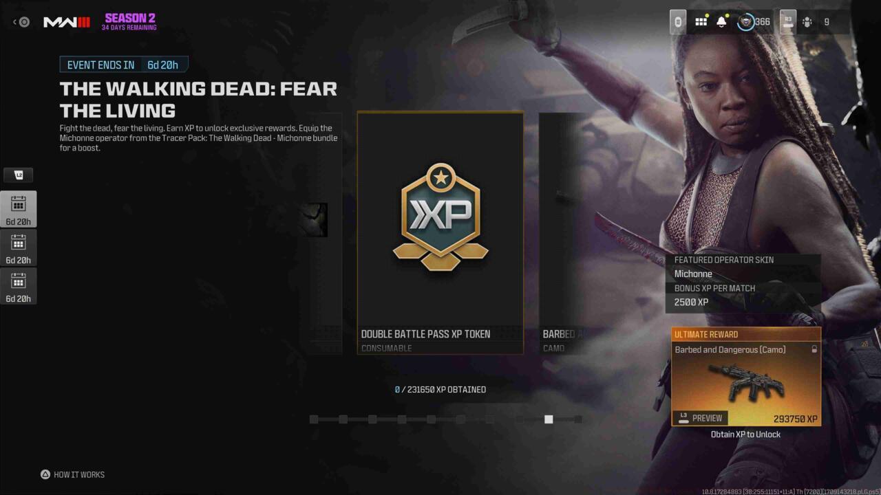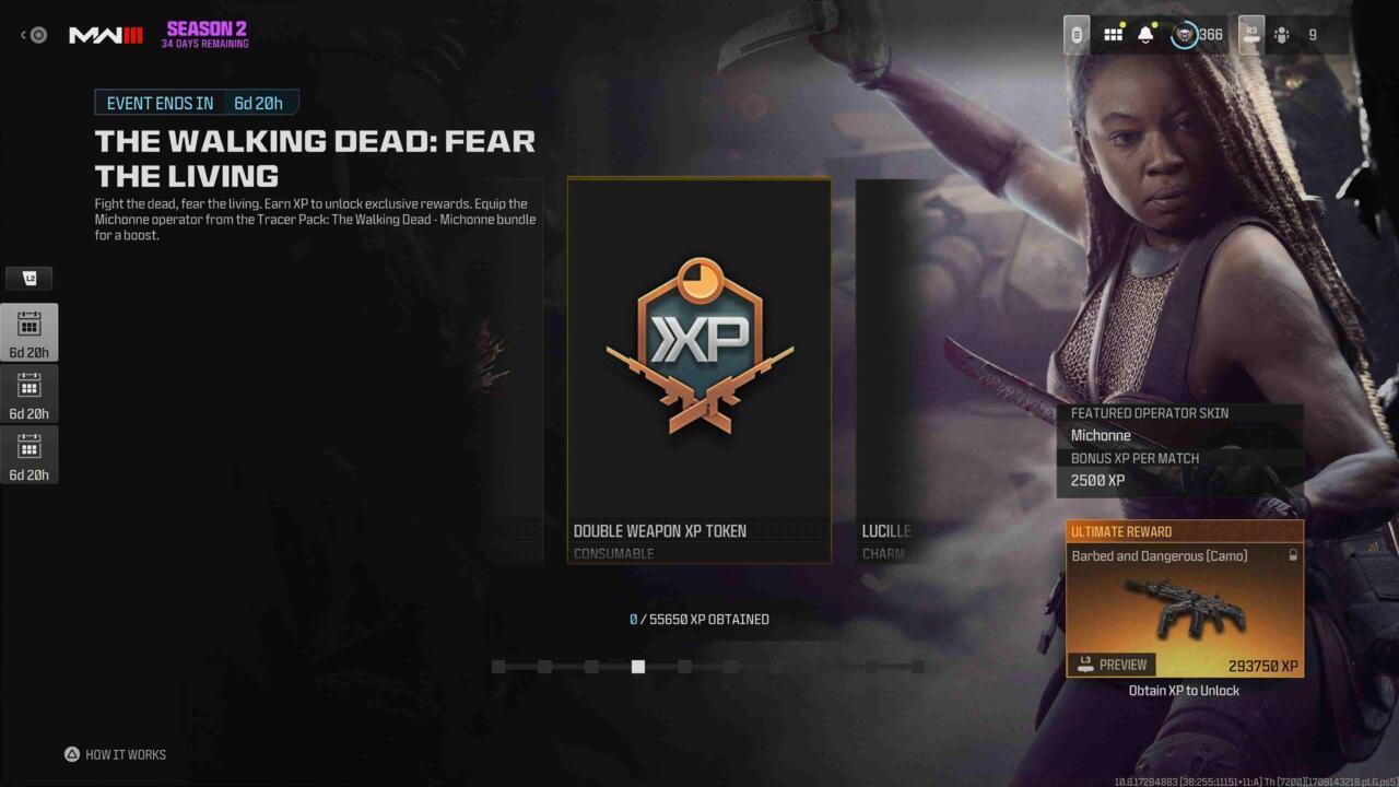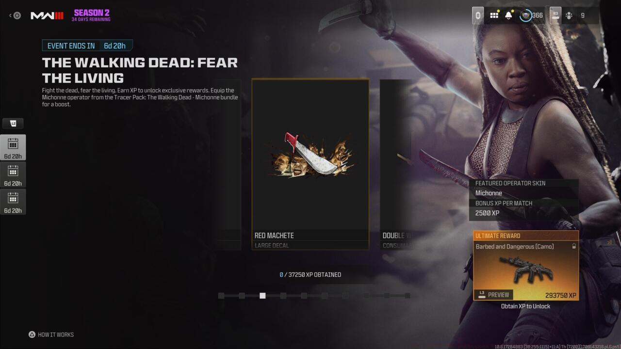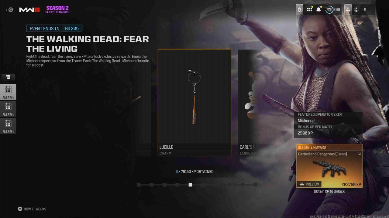 - The Walking Dead crossover offers 8 rewards requiring 181,000 total XP across Modern Warfare 3 and Warzone