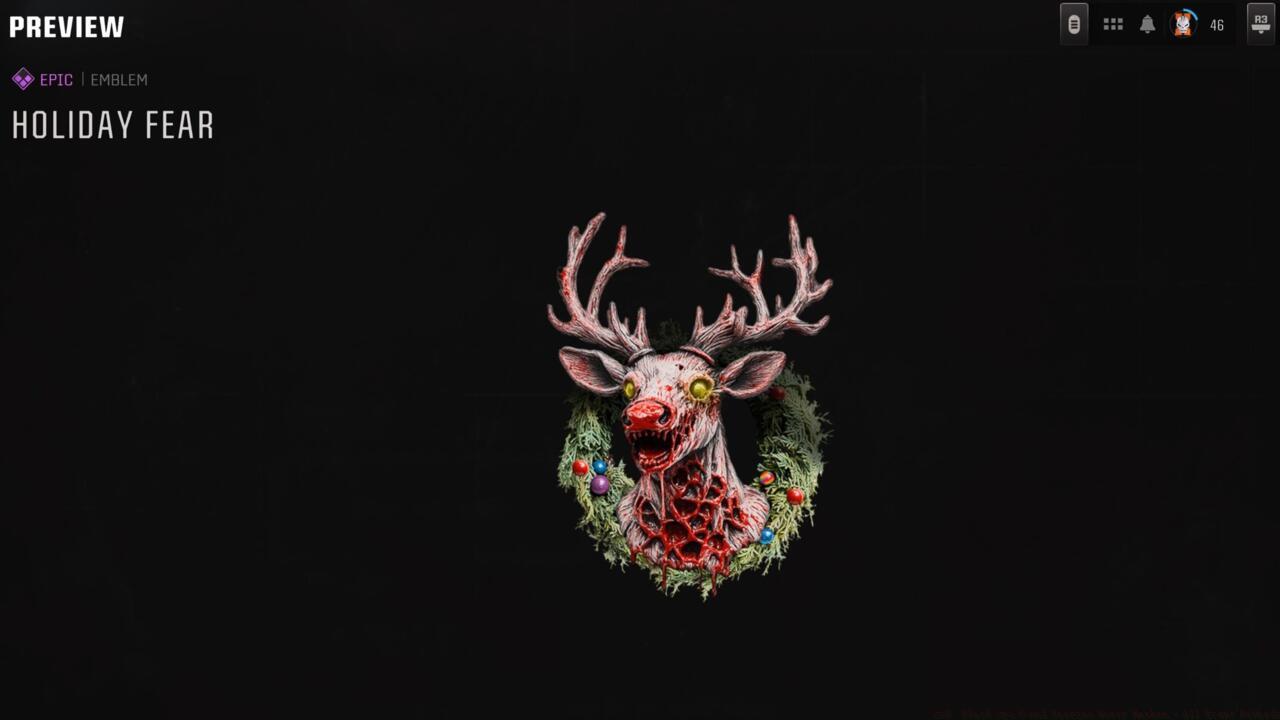 Your first milestone at 9,000 XP grants the Holiday Fear emblem, featuring a macabre undead reindeer perfect for seasonal customization. This early reward provides immediate visual flair while you continue toward more substantial unlocks.