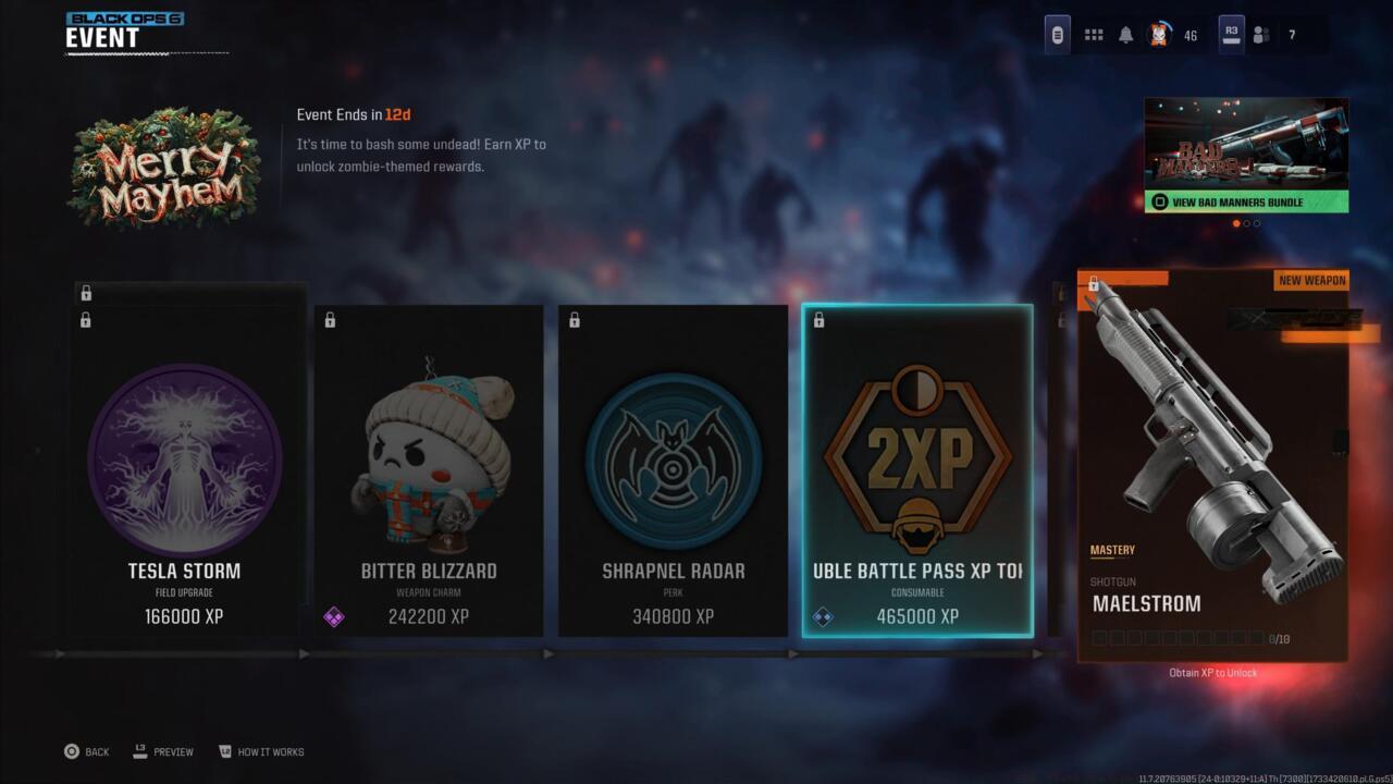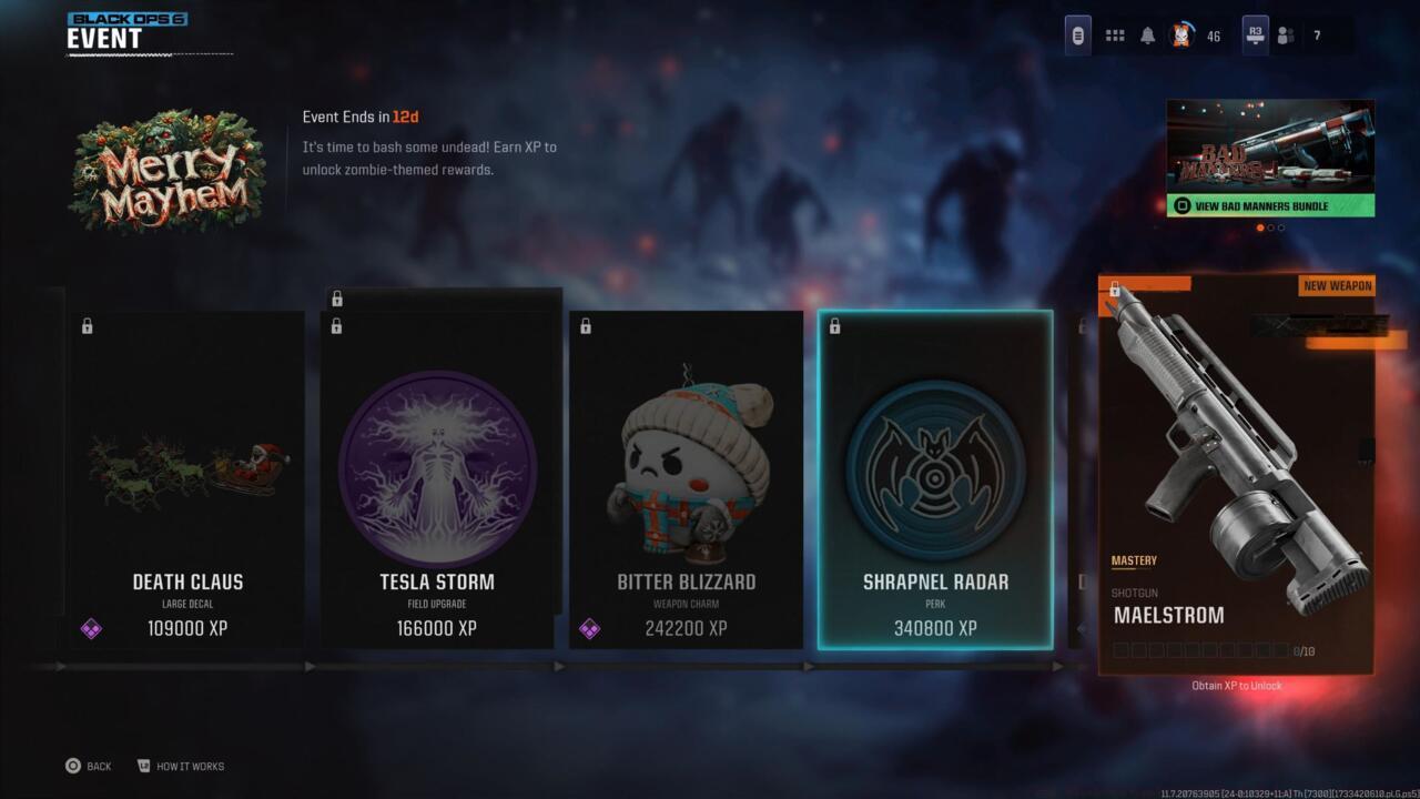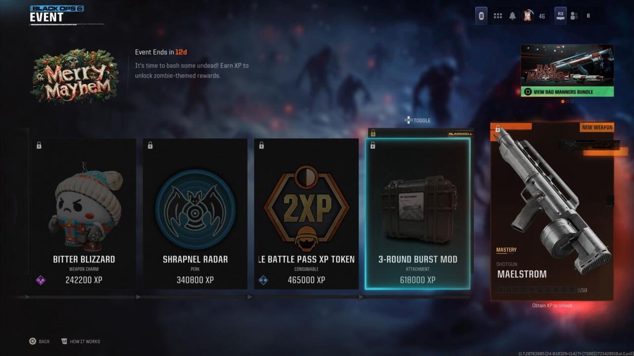 Merry Mayhem remains active across Black Ops 6 and Warzone platforms through December 19. Each cosmetic and functional item is gated behind cumulative XP thresholds, meaning consistent gameplay across multiplayer, battle royale, and undead modes will progressively unlock your rewards.