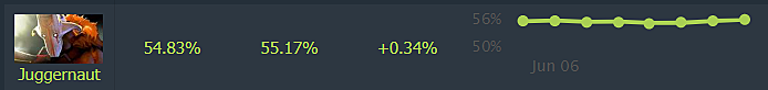 - Juggernaut dominates with 55% win rate due to healing ward synergy with salve nerfs