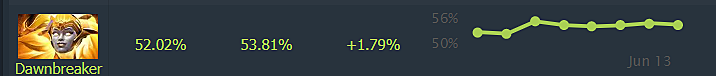 Dawnbreaker transformed from a decent pick to a top-tier offlaner through significant buffs. She now boasts one of the highest win rates in the game, offering both lane dominance and global teamfight presence. Her healing capabilities synergize perfectly with the salve nerfs, making her a self-sufficient frontliner.