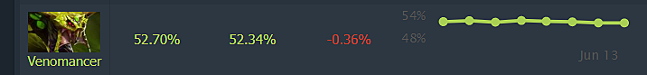 Venomancer capitalizes on the BKB changes through his persistent damage-over-time abilities. While his win rate decreased slightly from the previous patch, he remains among the top performers, particularly against heroes reliant on temporary spell immunity.