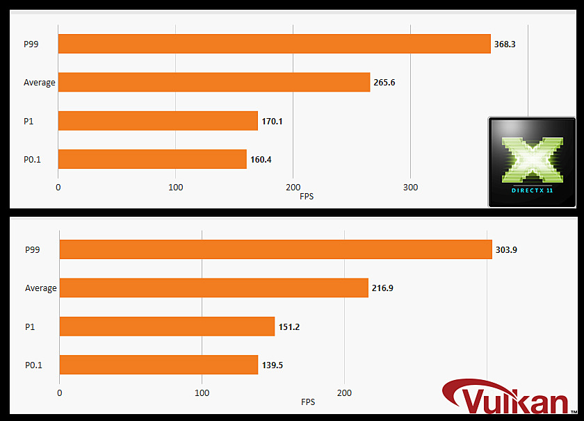 Vulcan and DirectX 11 test results, FPS, performance compared