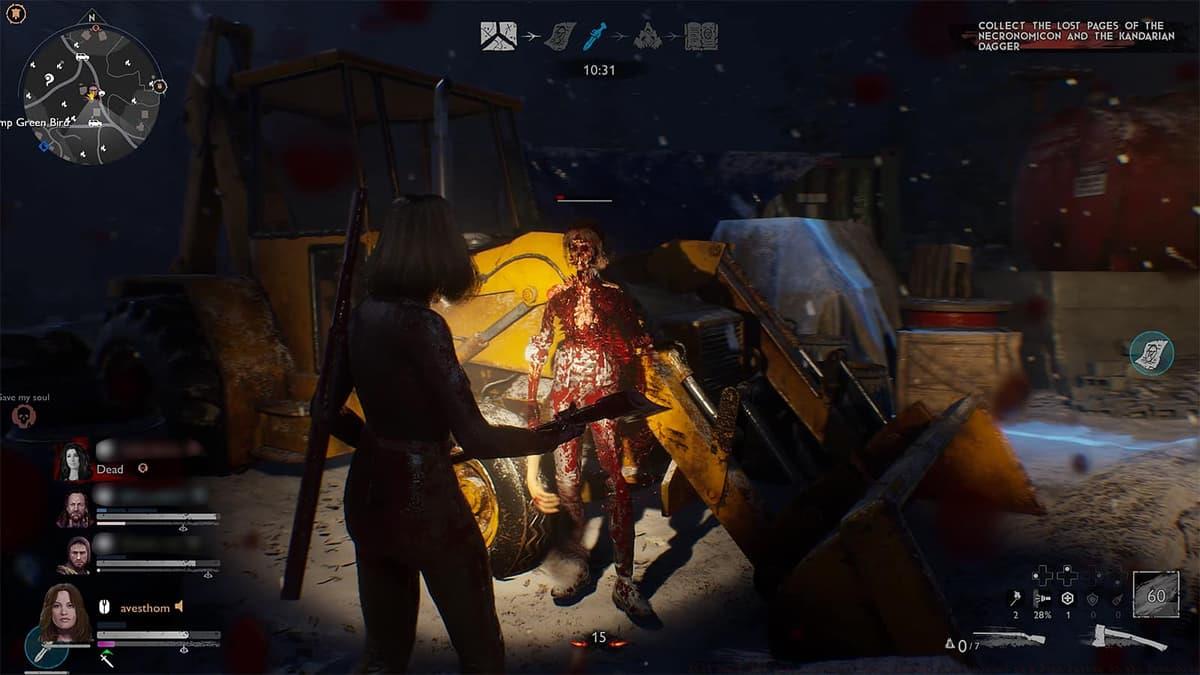 Evil Dead: The Game is chock-full of over-the-top gore. An Evil Dead experience would be incomplete without copious bloodshed, and Saber Interactive delivers this in spectacular fashion. Survivors dismantle Deadites through shooting, bludgeoning, and executing elaborate finishers that sever limbs, melt flesh to bone—transforming enemies into skeletal forms—and spray crimson viscera across screens and characters. The unapologetic gore complements weighty combat mechanics on both sides, where dodging and strategic positioning enable well-timed attacks. Cooperative takedowns of resilient enemies provide particularly satisfying moments. The expansive game world (with additional Castle Kandar map forthcoming as free DLC) encourages thorough exploration. Numerous points of interest contain valuable loot including weapons, consumables (Shemp’s Cola for health restoration, amulets for shield regeneration), and ammunition. Locations range from airplane crash sites and abandoned residences to convenience stores, haunted cabins, and eerie doll factories. Survivor success heavily depends on team cohesion and communication. While voice chat functionality exists, many players utilize the emote system to request assistance, coordinate movement, or redirect distracted teammates toward objectives.
