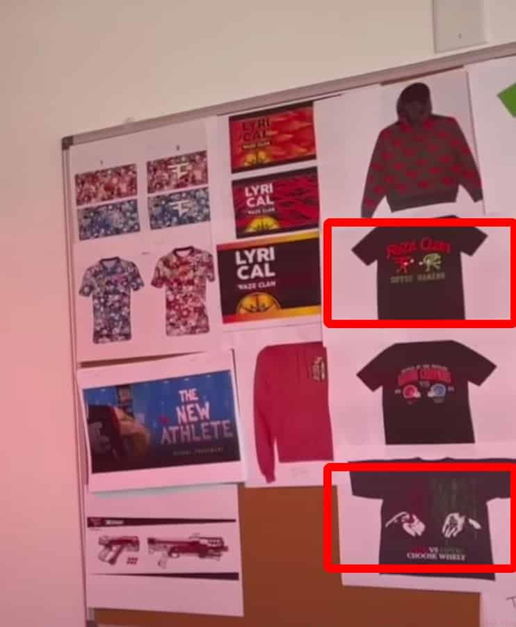 YouTube personality Mike Majlak inadvertently revealed what appears to be upcoming collaborative merchandise between esports giants FaZe Clan and OpTic Gaming in his June 18 vlog. The footage, captured at FaZe Clan’s headquarters, shows design mockups displayed on a board during the four-minute mark of the video.