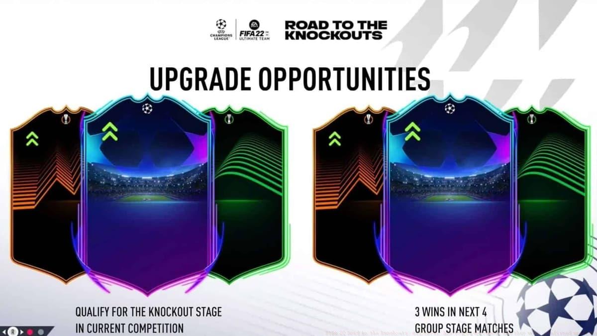 https://twitter.com/EASPORTSFIFA/status/1449057490146975745 The RTTK upgrade system operates through two distinct performance triggers: first, cards receive an upgrade when their club advances to the Knockout Stage of their European competition and additionally, they qualify for a potential secondary upgrade by securing 3 victories from their subsequent 4 Group Stage matches.