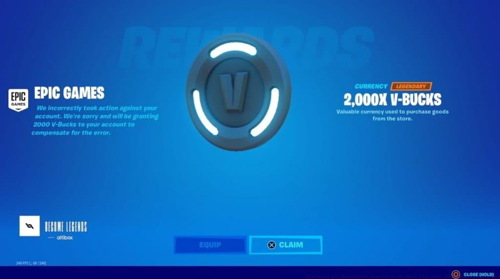 Epic Games/Noahreyli/TwitchEpic Games compensated Noahreyli with 2000 V-Bucks following the erroneous ban