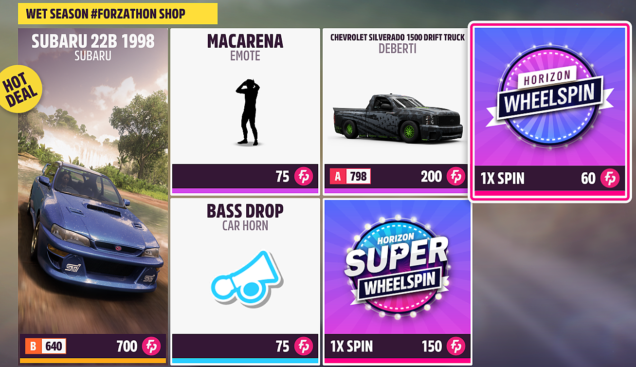 Seasonal Championship: La Fiesta. Ford vehicle requirement restricted to A-class performance. Consider testing the 2018 Ford Mustang GT (tuning codes: 116 292 333 or 160 445 552), the 1969 Ford Mustang (tuning code: 393 882 860) or the 2005 Ford GT (tuning code: 682 069 034).