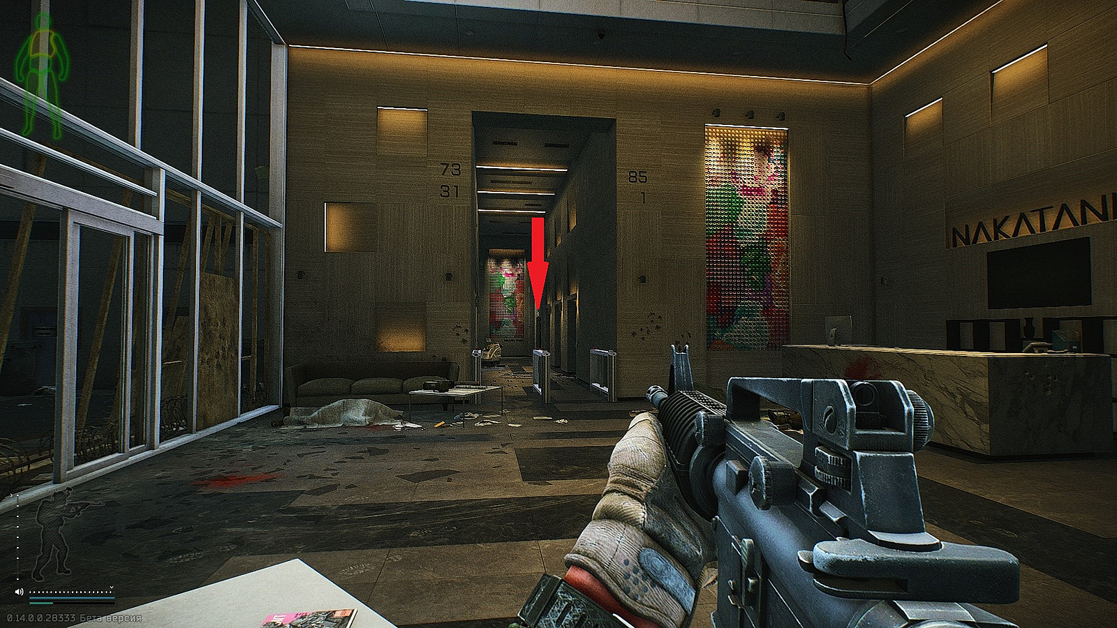 The Nakatani retail establishment houses this extraction in the northeastern quadrant, positioned at the eastern terminus of Norvinskaya street. Identification markers include prominent crimson neon signage displaying “Nakatani” in clear lettering. Entry requires navigating through transparent entrance doors while maintaining extreme caution—a designated marksman engages targets approaching the leftward pathway beneath the illuminated sign. Upon successful entry, execute an immediate left turn, proceed alongside temporary partition structures, and access the final doorway positioned on the right-hand side.