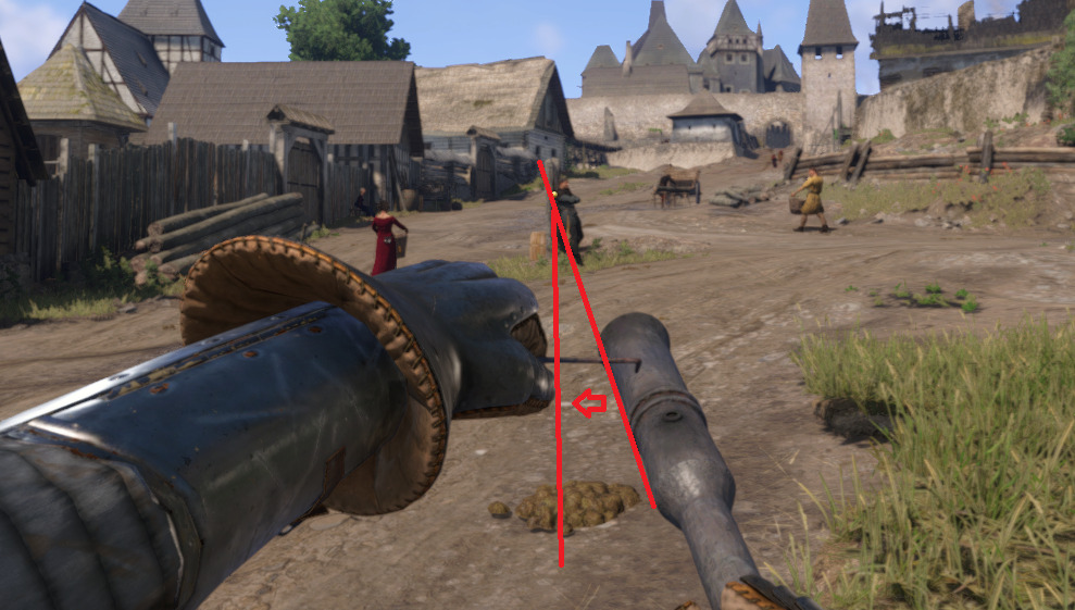 - Use Saxon bascinet helmet as iron sights for improved long-range accuracy