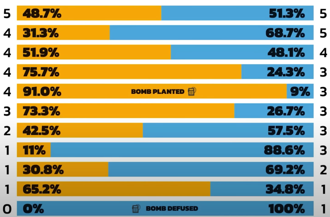 - Track post-plant scenarios and prioritize retake opportunities for additional Round Swing bonuses