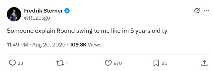 - Round Swing rewards disadvantage kills heavily but requires round wins for bonuses
