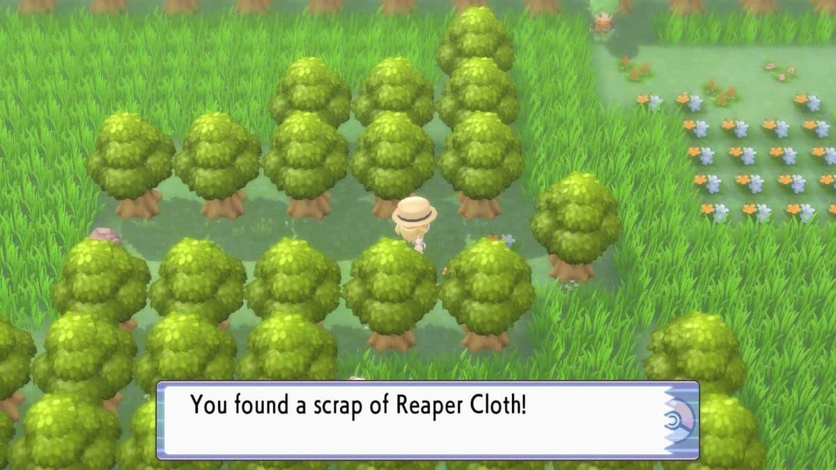 Eventually you’ll reach terrestrial territory identified as Route 229. The Reaper Cloth rests concealed between tree formations within a grassy expanse.