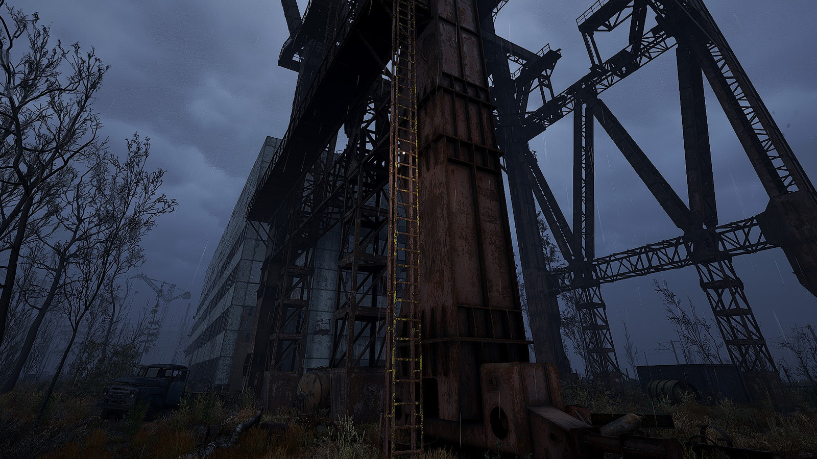 This particular scanning unit resides westward of the Rostok operational base within an expansive industrial structure depicted below. You’ll encounter another stalker attempting device activation moments before a bloodsucker assault. Intervention to preserve the operative remains optional before accessing the mechanism post-encounter resolution.