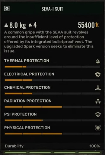 - SEVA-I offers superior psi protection and can be found in Yantar Production Complex through precise platform navigation
