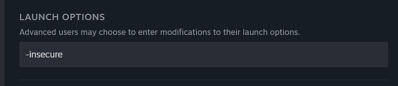 - Enter the exact command “-insecure” in the provided text field. Launch the game or restart it if already running to activate the changes immediately.