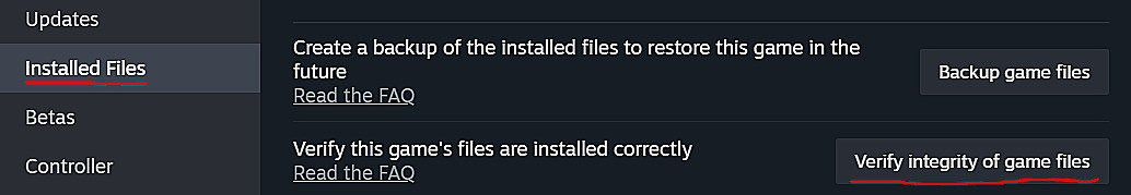 - Navigate to Installed Files section and select “Verify Integrity of Game Files”