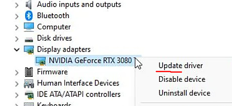 For Windows Update method: Type “Device Manager” in the search field, expand Display Adapters, right-click your graphics card, and select “Update driver.” Choose automatic search for the latest available drivers.