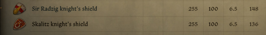 - Both Sir Radzig Kobyla and Skalitz heraldry shields cost approximately 500-800 groschen